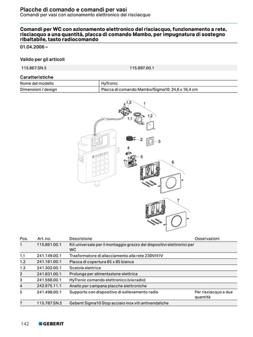 Comandi per WC con azionamento elettronico del risciacquo, funzionamento a rete,