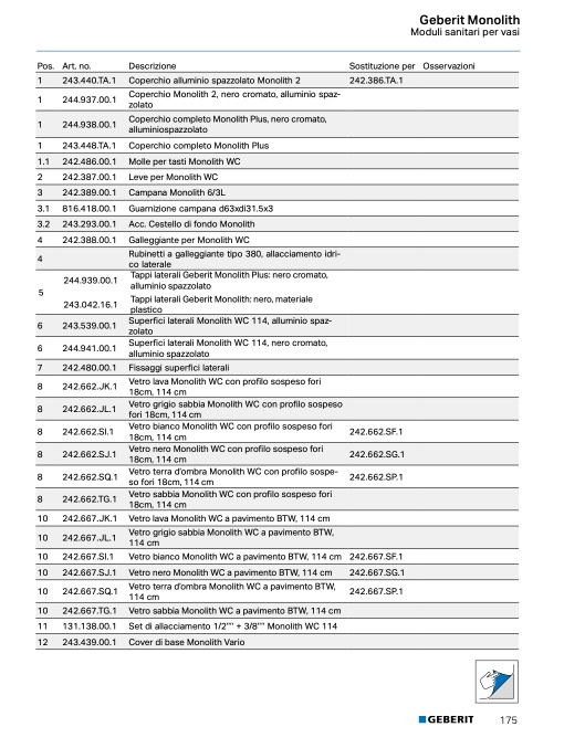 1.1 242.486.00.1 Molle per tasti Monolith WC