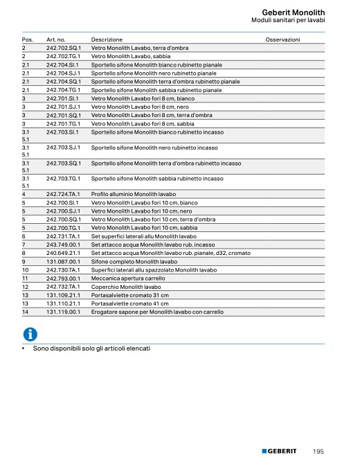 2. n4o2. .703.TGD.1escrizioSnpeortello sifone Monolith sabbia rubinetto inOcsasesrsvaozioni