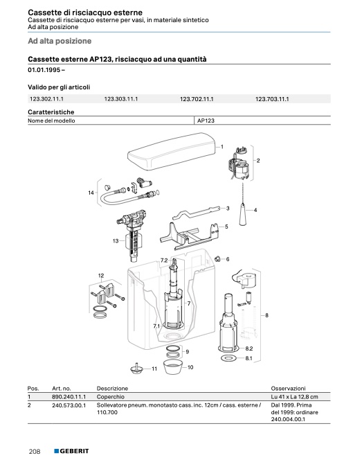 Cassette esterne AP123, risciacquo ad una quantità