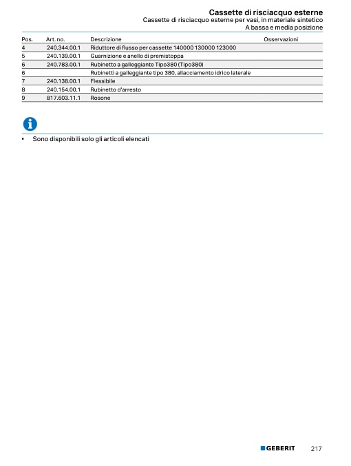• Comandi WC HyTouch, manuali / pneumatici, risciacquo ad una quantità → pag. 155