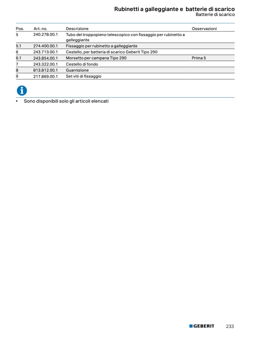 Cestello, per batteria di scarico Geberit Tipo 290