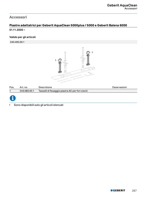 Piastre adattatrici per Geberit AquaClean 5000plus / 5000 e Geberit Balena 6000