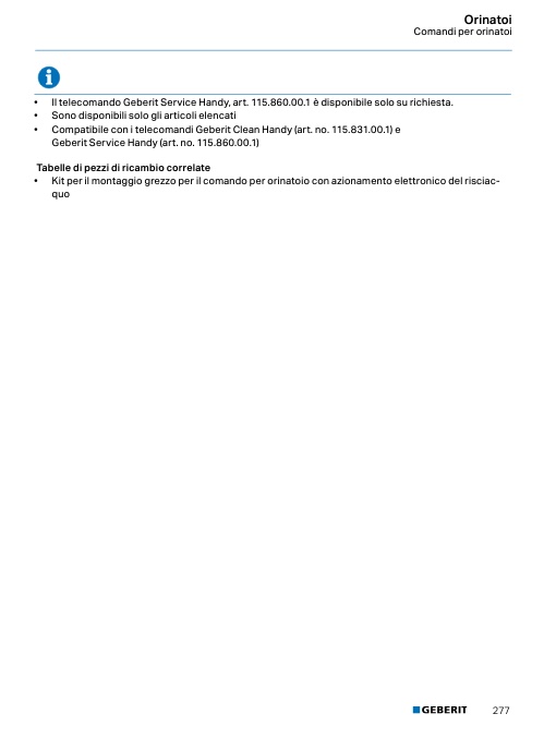 • Compatibile con i telecomandi Geberit Clean Handy (art. no. 115.831.00.1) e