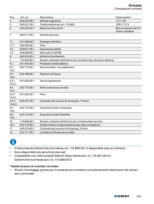 Il telecomando Geberit Service Handy, art. 115.860.00.1 è disponibile solo su richiesta.