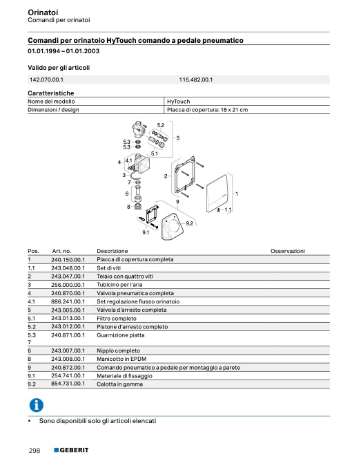 Comandi per orinatoio HyTouch comando a pedale pneumatico