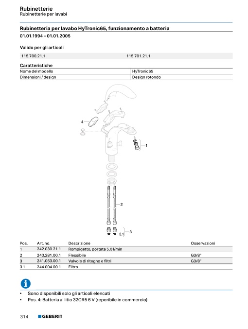 Pos. 4: Batteria al litio 32CR5 6 V (reperibile in commercio)
