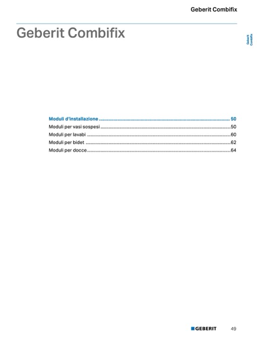 Moduli per bidet . . . . . . . . . . . . . . . . . . . . . . . . . . . . . . . . . . . . . . . . . . . . . . . . . . . . . . . . . . . . . . . . . . . . . . . 62