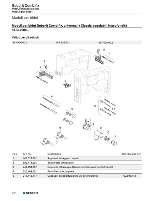 Moduli per bidet Geberit Combifix, universali / Classic, regolabili in profondità