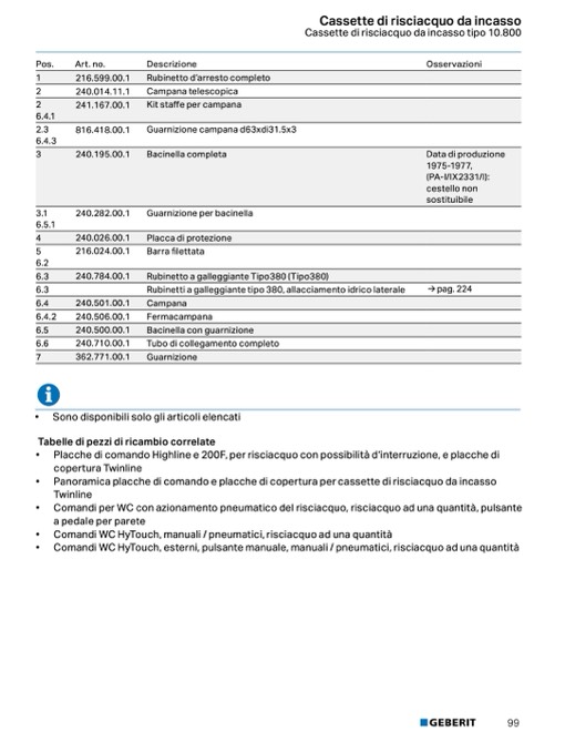 Cassette di risciacquo da incasso tipo 10.800