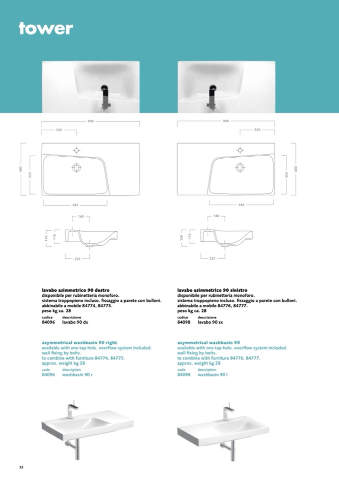 sistema troppopieno incluso. fissaggio a parete con bulloni.