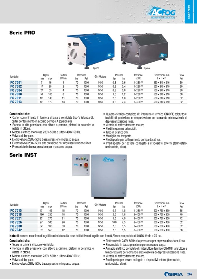 • Motore elettrico monofase 230V-50Hz e trifase 400V-50Hz.