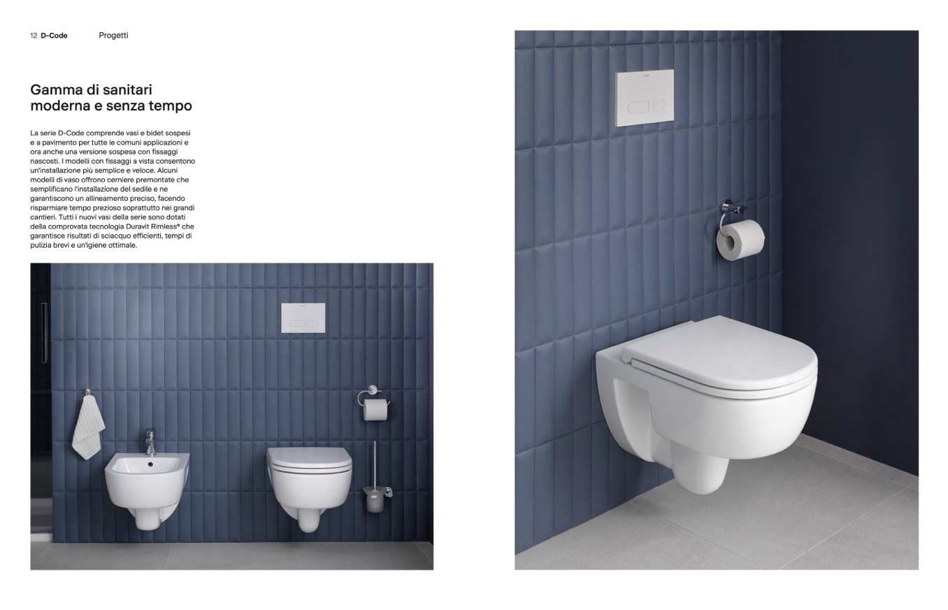 La serie D-Code comprende vasi e bidet sospesi