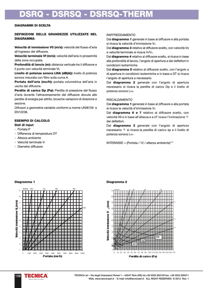 Dal diagramma 1 generale in base al diffusore e alla portata