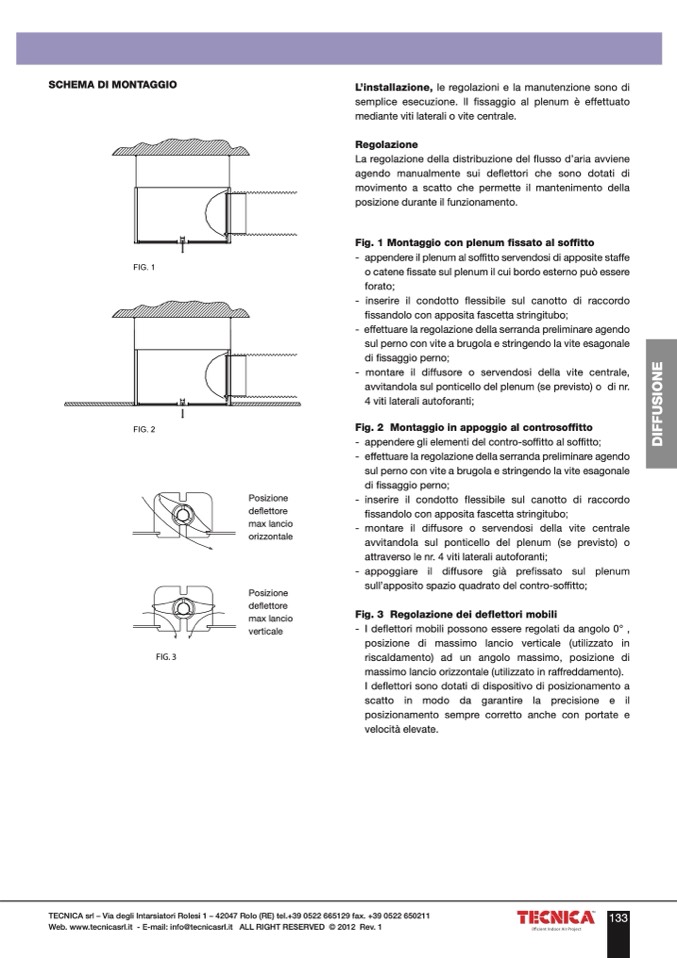 semplice esecuzione. Il fissaggio al plenum è effettuato