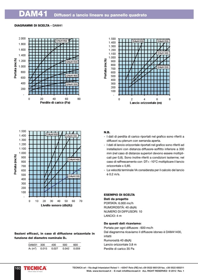 Dal diagramma ricaviamo il diffusore idoneo è DAM41400,