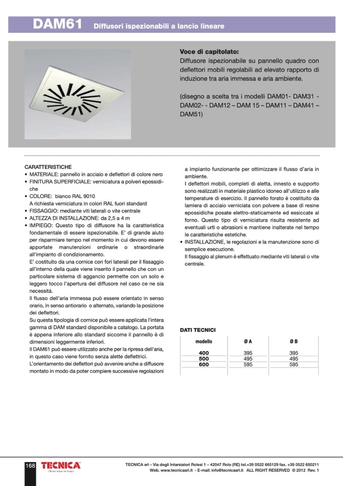 TECNICA srl – Via degli Intarsiatori Rolesi 1 – 42047 Rolo (RE) tel.+39 0522 665129 fax. +39 0522 650211