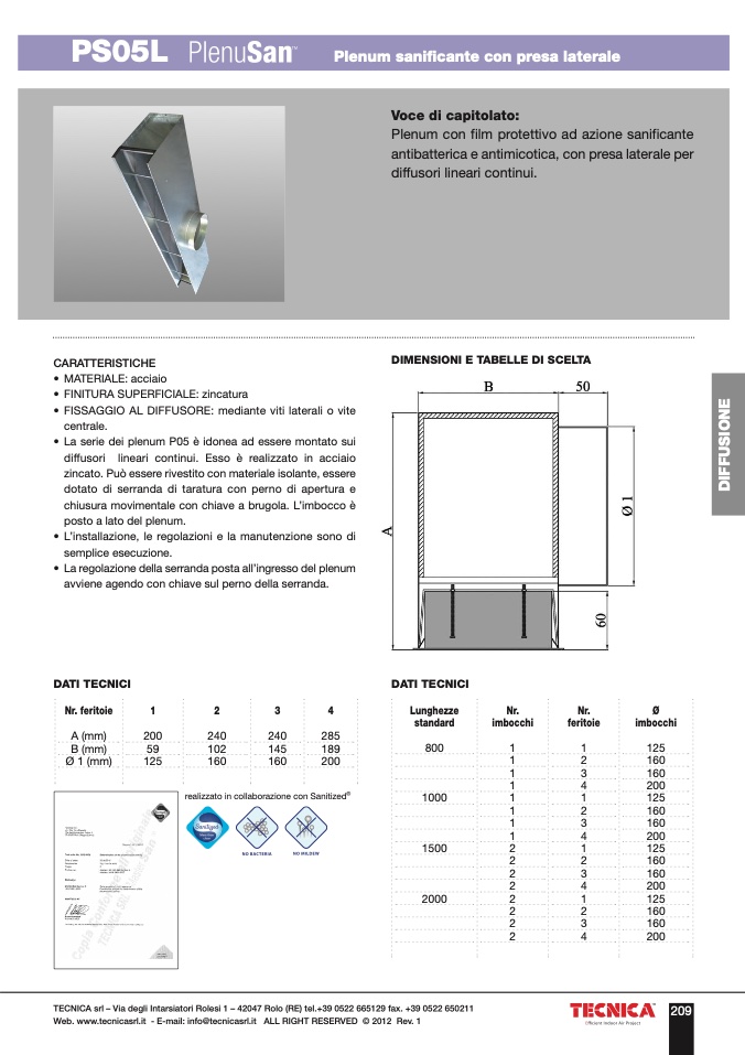Web. www.tecnicasrl.it - E-mail: info@tecnicasrl.it ALL RIGHT RESERVED © 2012 Rev. 1
