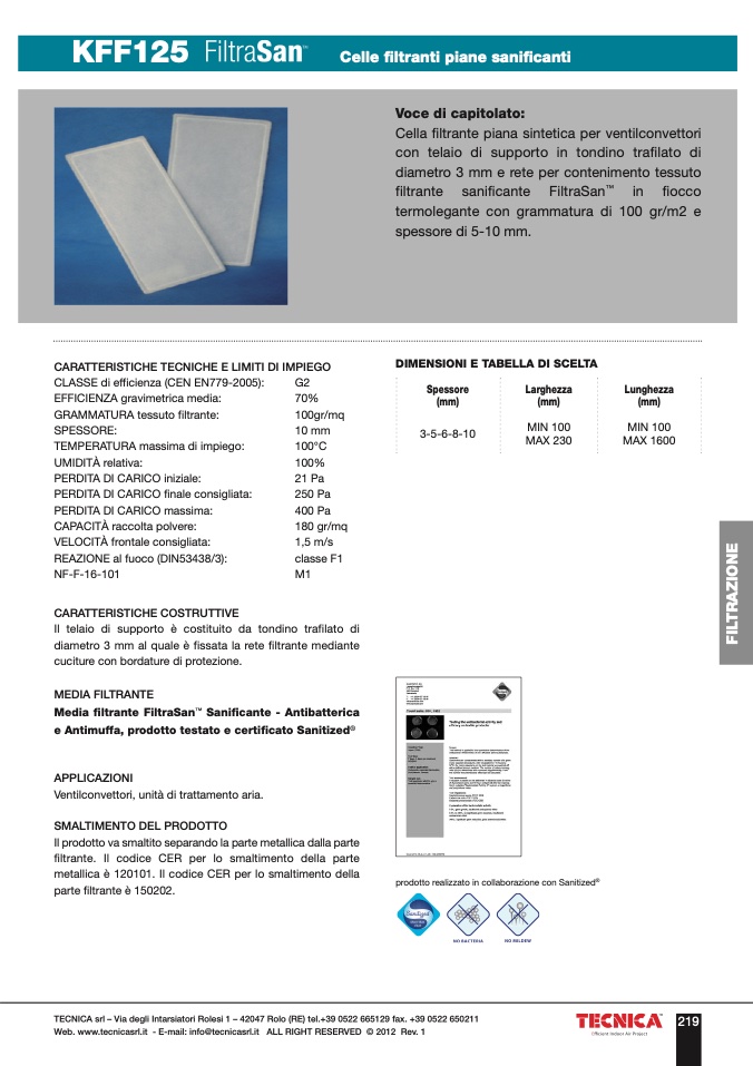 Media filtrante FiltraSanTM Sanificante - Antibatterica