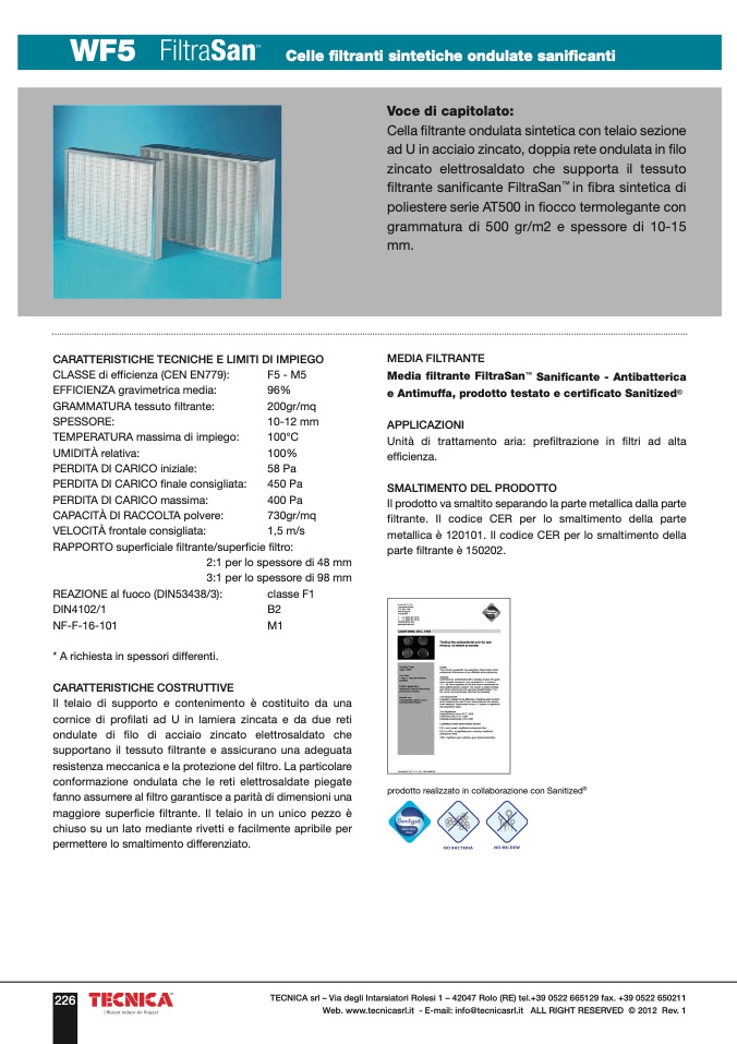Media filtrante FiltraSanTM Sanificante - Antibatterica