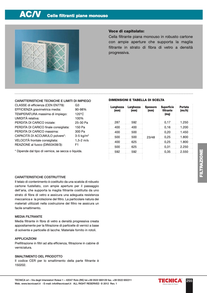 Il codice CER per lo smaltimento della parte filtrante è