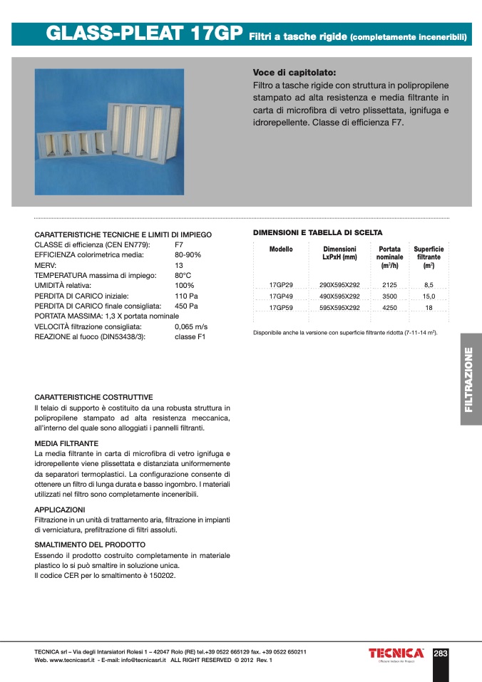 Web. www.tecnicasrl.it - E-mail: info@tecnicasrl.it ALL RIGHT RESERVED © 2012 Rev. 1