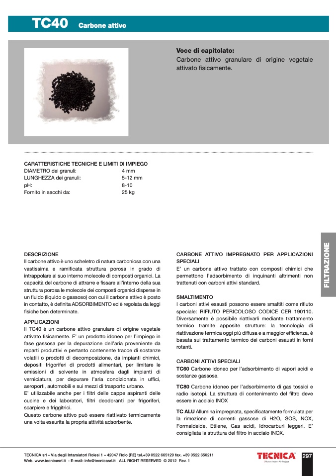 TC60 Carbone idoneo per l’adsorbimento di vapori acidi e