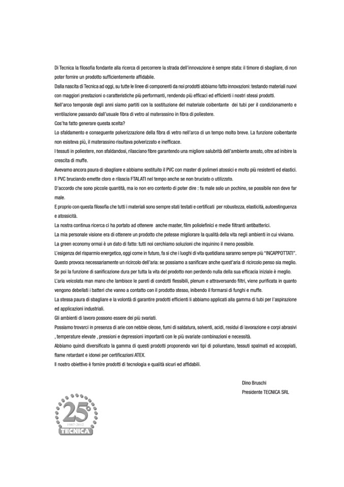 Dalla nascita di Tecnica ad oggi, su tutte le linee di componenti da noi prodotti abbiamo fatto innovazioni: testando materiali nuovi