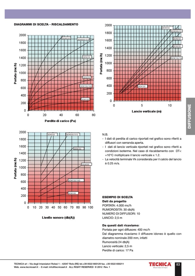 Dal diagramma ricaviamo il diffusore idoneo è quello con