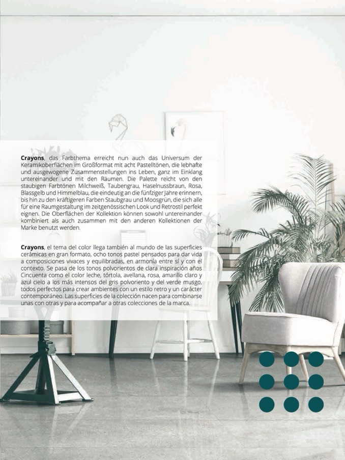 cerámicas en gran formato, ocho tonos pastel pensados para dar vid