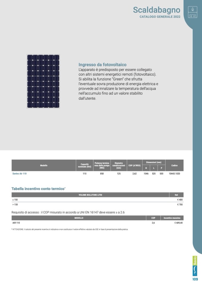 Requisito di accesso : il COP misurato in accordo a UNI EN 16147 deve essere ≥ a 2.6