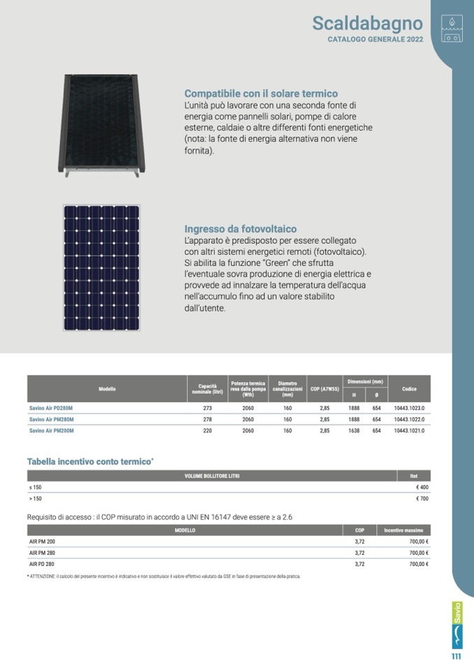 Requisito di accesso : il COP misurato in accordo a UNI EN 16147 deve essere ≥ a 2.6