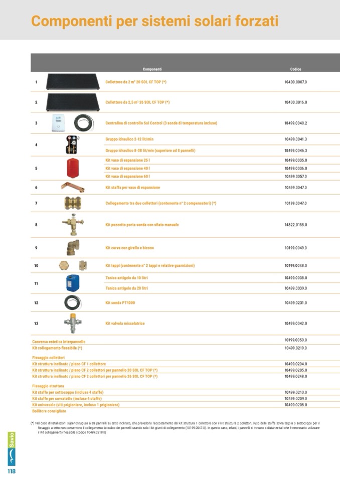 (*) Nel caso d’installazioni superiori/uguali a tre pannelli su tetto inclinato, che prevedono l’accostamento del kit struttura 1 collettore con il kit struttura 2 collettori, l’uso delle staffe sovra tegola o sottocoppo per il