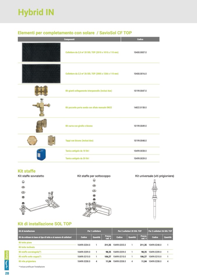 Kit da ordinare in base al tipo di tetto e al numero di collettori