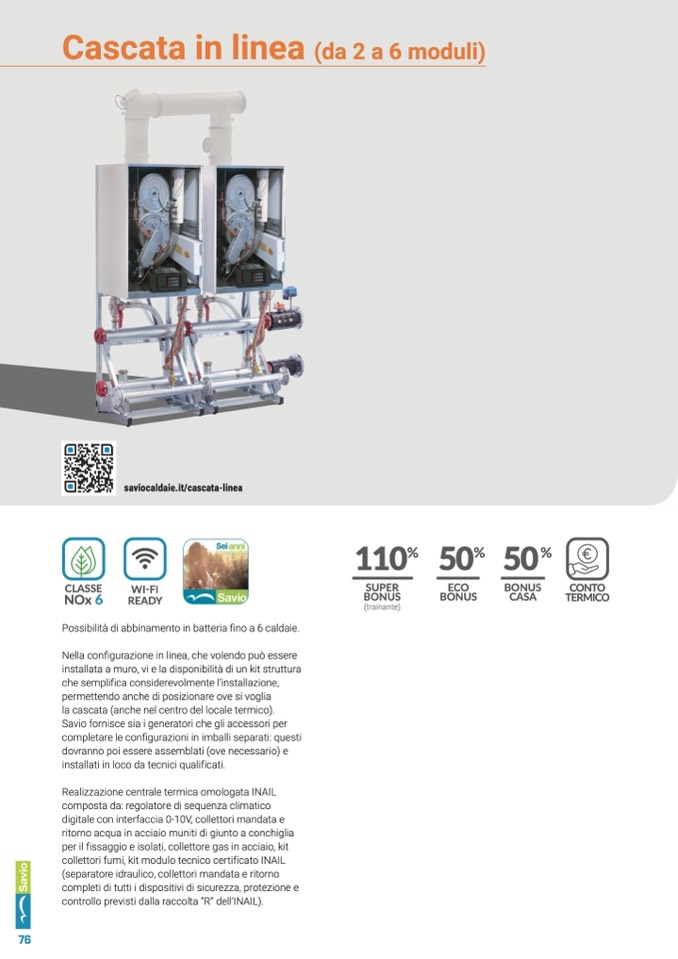 Possibilità di abbinamento in batteria fino a 6 caldaie.