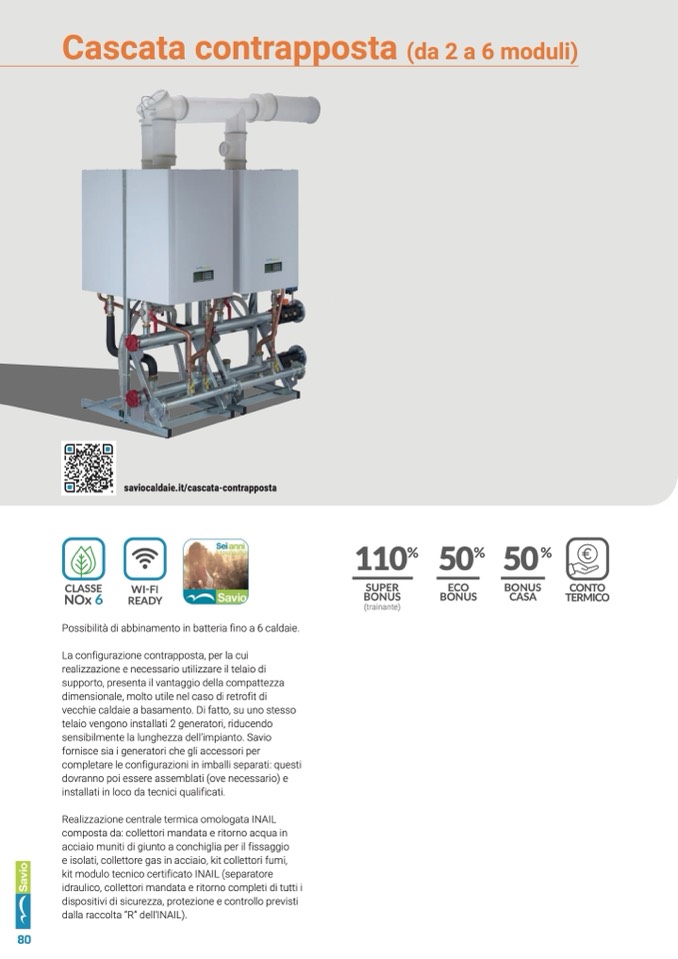 Possibilità di abbinamento in batteria fino a 6 caldaie.