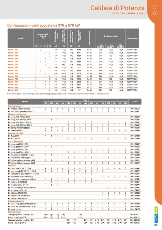 * Tutti i sistemi da 3 a 6 caldaie contengono il bypass cable: Cablaggio per bypassare la caldaia slave durante la manutenzione mantenendo il sistema in funzione.