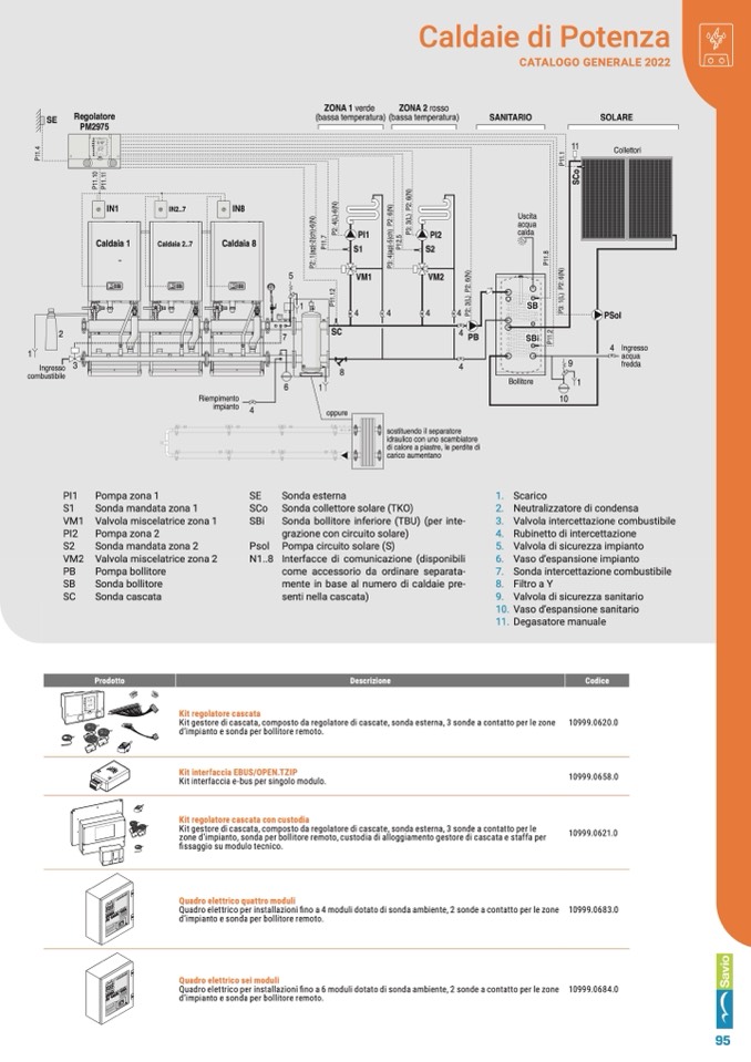 zone d’impianto, sonda per bollitore remoto, custodia di alloggiamento gestore di cascata e staffa per