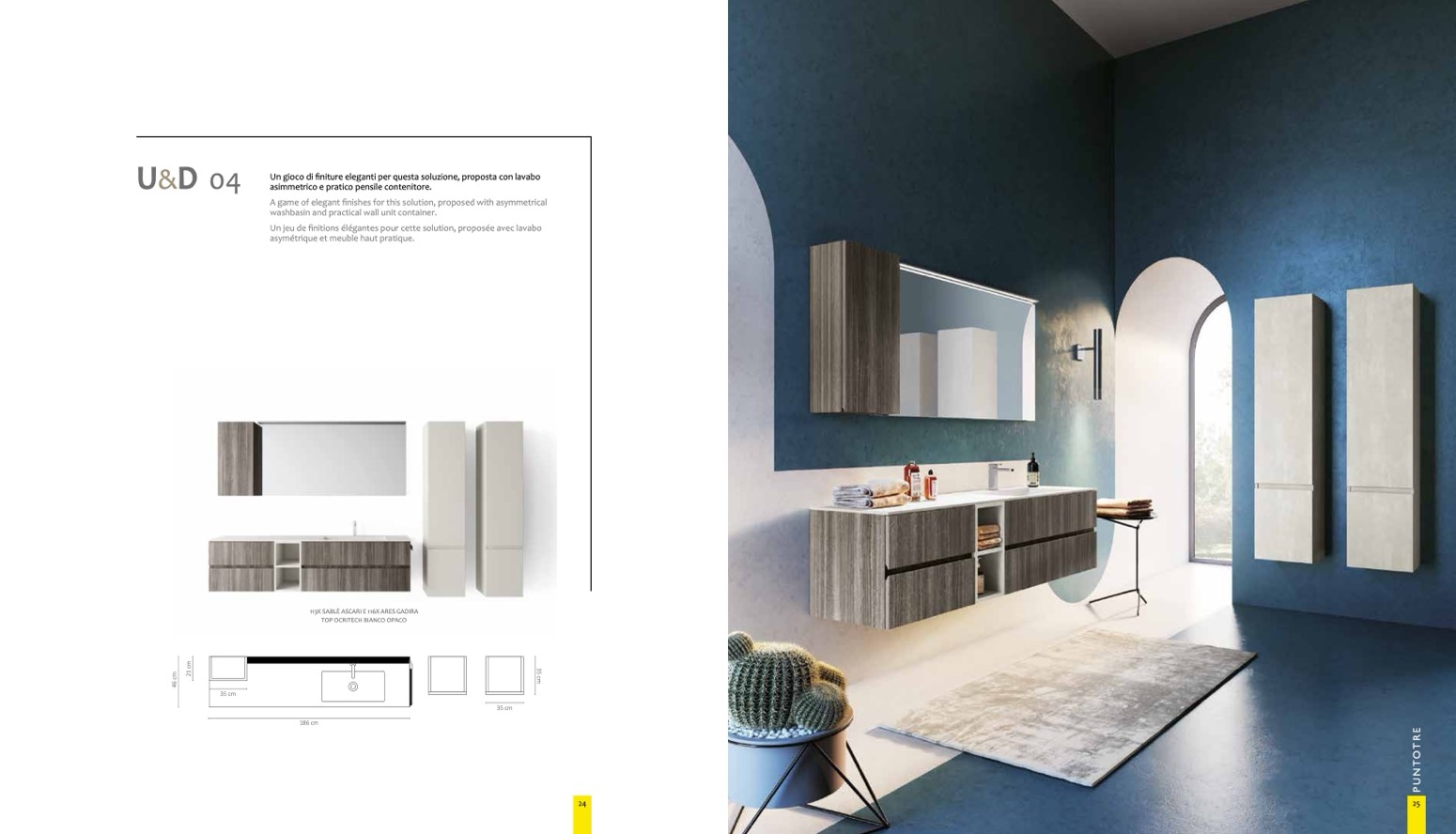 Un gioco di finiture eleganti per questa soluzione, proposta con lavabo