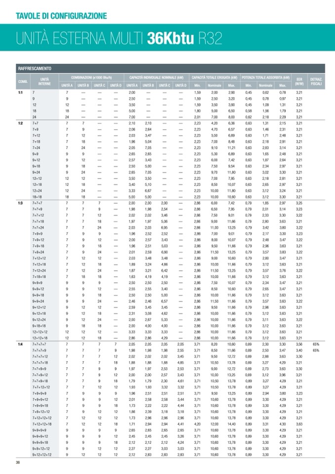 COMBINAZIONI (x1000 Btu/h)