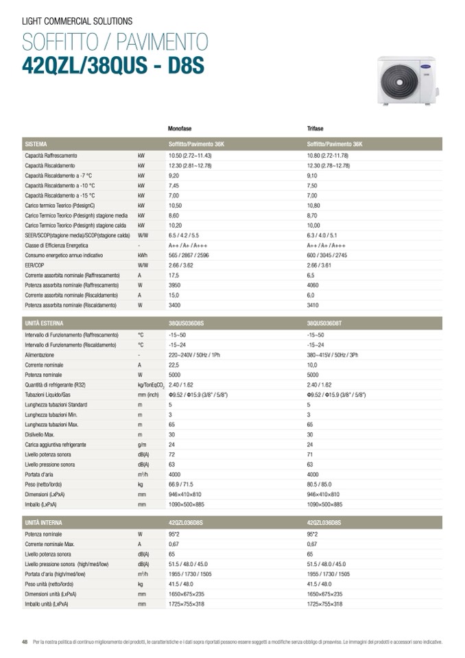 48 Per la nostra politica di continuo miglioramento dei prodotti, le caratteristiche e i dati sopra riportati possono essere soggetti a modifiche senza obbligo di preavviso. Le immagini dei prodotti e accessori sono indicative.