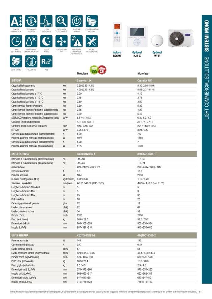 Per la nostra politica di continuo miglioramento dei prodotti, le caratteristiche e i dati sopra riportati possono essere soggetti a modifiche senza obbligo di preavviso. Le immagini dei prodotti e accessori sono indicative. 51