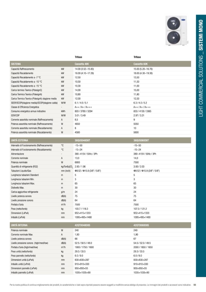Per la nostra politica di continuo miglioramento dei prodotti, le caratteristiche e i dati sopra riportati possono essere soggetti a modifiche senza obbligo di preavviso. Le immagini dei prodotti e accessori sono indicative. 55