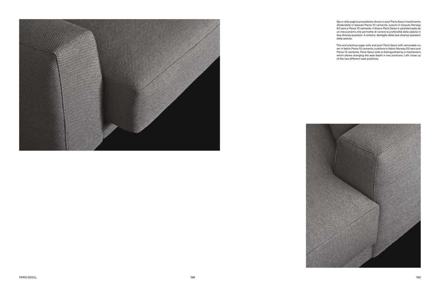 03 nero e Paros 12 cemento. Il divano Paris Seoul è caratterizzato da