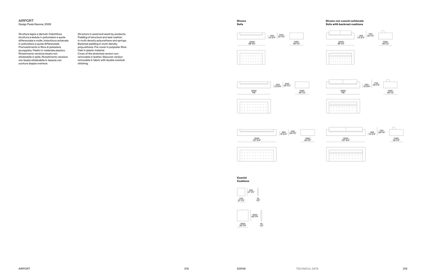 struttura e seduta in poliuretano a quote