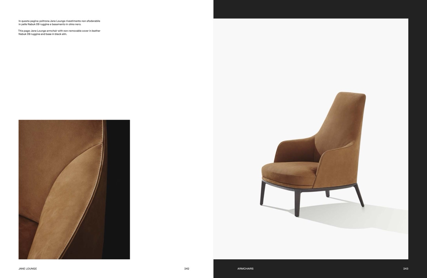 This page: Jane Lounge armchair with non-removable cover in leather