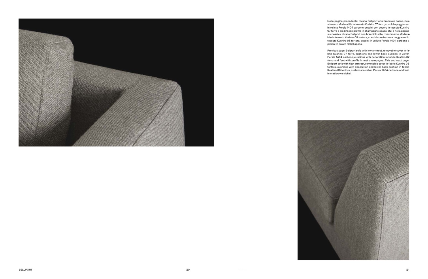 Kushiro 08 tortora, cushions in velvet Persia 1404 carbone and feet