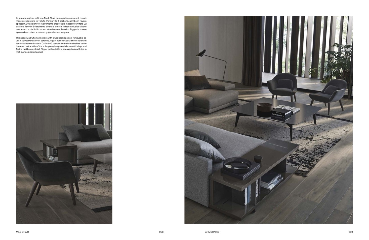 This page: Mad Chair armchairs with lower back cushion, removable co-