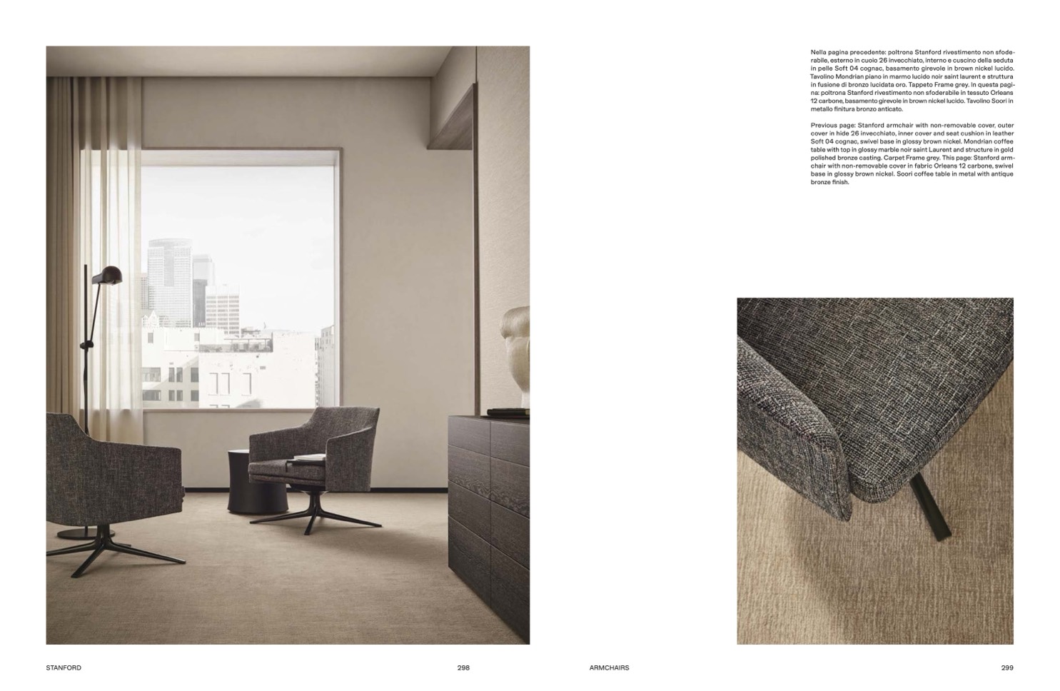Nella pagina precedente: poltrona Stanford rivestimento non sfode-