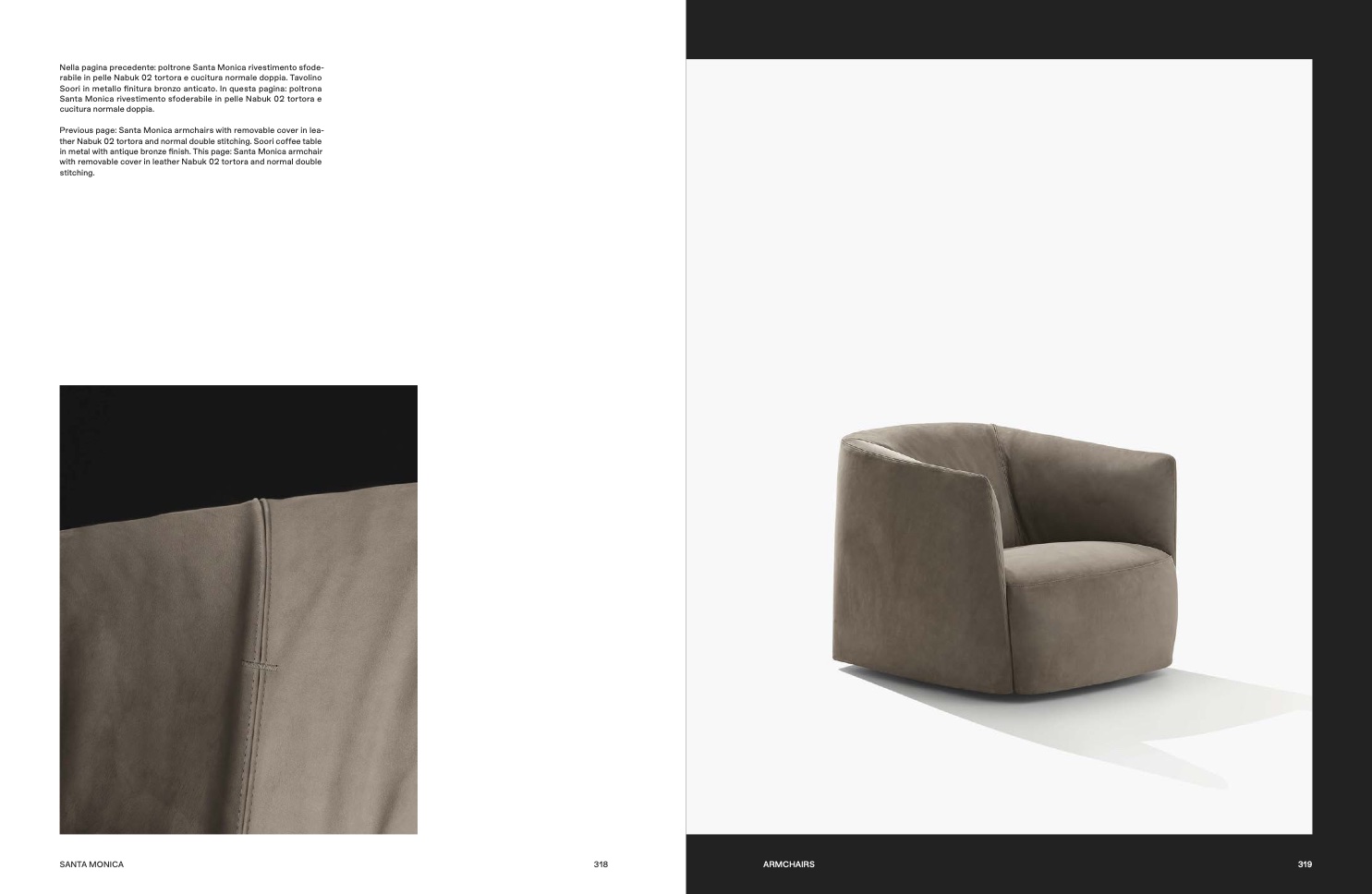 Previous page: Santa Monica armchairs with removable cover in lea-